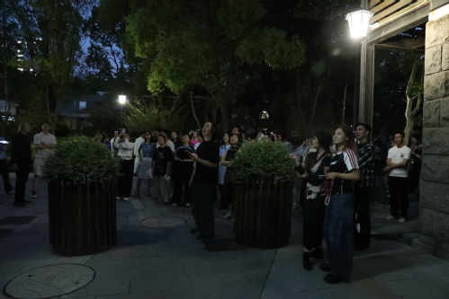 第五日下午延续周四的工作,儒本老师根据周五晚上的汇报安排,细细帮助三组同学完善了他们的小组片段,根据莎剧台词的行动性,指导同学处理舞台调度。晚上,儒本老师先在黑匣子对本周的工作做出总结,之后带领选修课同学一同前往校园草坪,观摩了室外版的罗密欧与朱丽叶“阳台戏”片段,大家都兴趣斐然。全体回到黑匣子后,继续观摩了三组片段,剩余一个小时时间,儒本老师和全体同学进行问答环节,使同学们对莎剧中的喜剧性有了更加深入的了解。