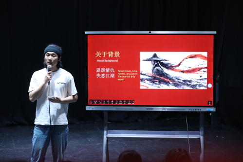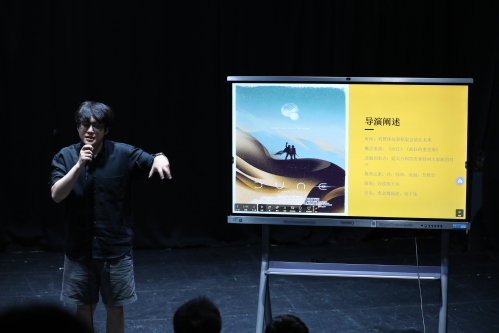 第五日的课程以学员们的导演阐述开场,同时专家还要求学员进行阐述的同时由另外四位学员扮演严苛的制作人对阐述内容进行质疑。基于对文本的充分理解,学员们的构思各具巧思,对这一经典剧本做出了诸多别出心裁重构。在课程的后半段,专家带领学员们进行了一些专注于团队交流与合作的表演训练作为下周将要进行的片段排演的准备工作。晚上,在红楼黑匣子剧场,2025国际导演大师班(莎剧创作)进行了第三周的公开课教学暨汇报,前来学习的观众们反响热烈、积极参与,气氛十分活跃。在当晚的汇报中,挑选了导演阐述环节中完成度较高,创新性较强的几个导演构思与观众分享,并让全体观众一同扮演“投资方”的身份与学员互动,让观众切实的感受到莎剧基于文本理解之上的无限可能性。之后展示的表演训练方法也令观众们兴趣斐然。