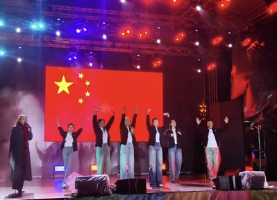 联合演出的成功余温未散,晚上七点,闭幕式歌舞晚会的大幕随即开启。中国上戏团队再次闪亮登场,以一曲青春洋溢的舞蹈《我们一起闯》,瞬间切换了舞台的节奏与气氛。他们用跃动的身影、灿烂的笑容和充满力量的舞步,将中国青年的无限活力与昂扬朝气展现得淋漓尽致。这支舞蹈,不仅仅是节目的呈现,更是一种精神的传递——它向世界宣告着当代中国开放、自信、勇于携手并进的时代风貌。台上的精彩演绎与台下的热烈喝彩交织在一起,构成了晚会中最动人的风景之一。