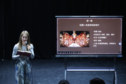 第二日的课程正式开始了《罗密欧与朱丽叶》的文本分析,学员们围坐分饰剧中角色,在专家的带领下逐段阅读剧本并进行分析。专家指出《罗密欧与朱丽叶》这一剧本的核心在于“由喜转悲”,因此务必要切实的理解文本所表述的内容。随着工作的进行,学员们在专家的引导下对于剧本中因翻译带来的语境转化而导致表意偏差的部分有了全新的认识。